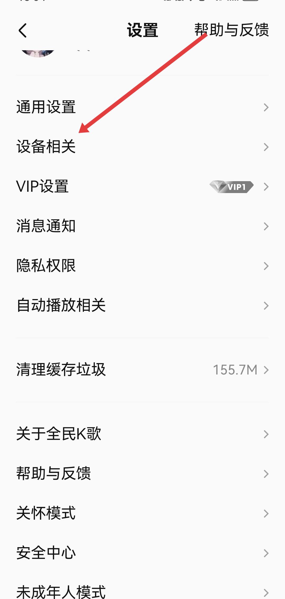 3、在设备设置页面里,点击耳机返听右侧的红色开关按钮,将其关闭,即可关闭耳返功能。