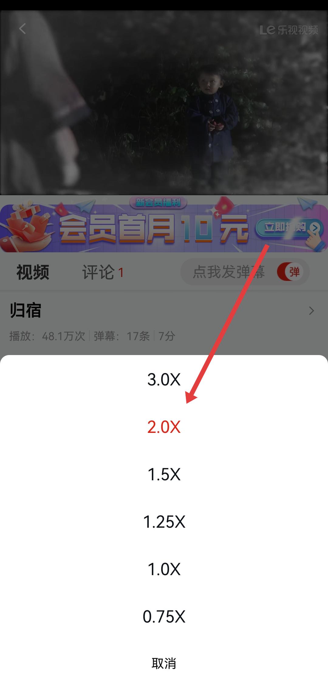 3、在倍速选择的列表里,需要点击2.0X,就能将视频设置为2倍速播放。