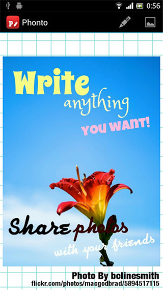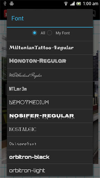 Phonto是运行在安卓手机上的一款支持快速装点您的珍贵照片标签工具,用户可以通过该软件从你的照片库或拍摄照片的相机添加图片文字、尺寸、位置和对齐选择文本的边界,支持改变大小和颜色轻松一键保存标记照片你的照片库,你的标签图片允许通过电子邮件、QQ/微信或上传个人社交平台展现出你不一样魅力。