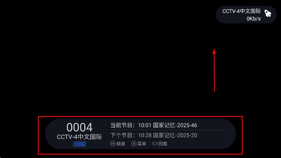 4、省份切换完成后,回到播放界面,此时界面下方会显示当前频道的节目信息等内容,向上滑动界面,即可浏览并选择其他频道进行观看。