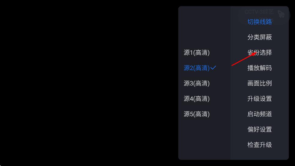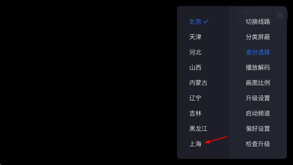 2、在弹出的设置菜单中,找到“省份选择”选项,点击该选项,展开省份列表。