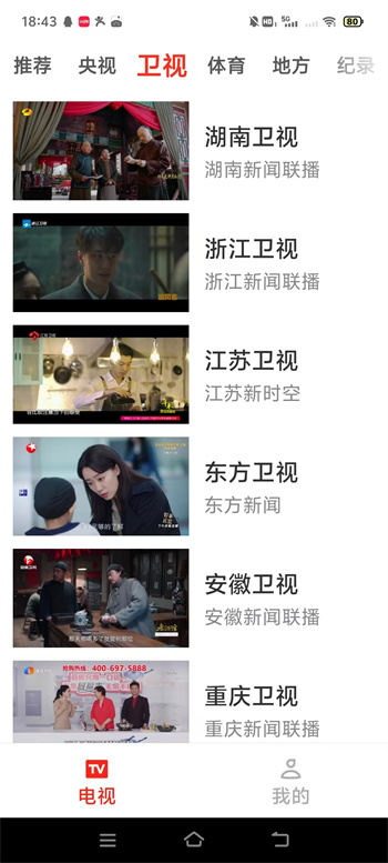 爱看电视TV包括央视、卫视、地方台、体育台等,湖南、浙江、东方、江苏、安徽、CCTV5体育赛事等直播统统不成问题。