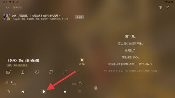 3、在详情页的播放控制区,点击三角形播放键,从当前章节开始播放,也可选集。