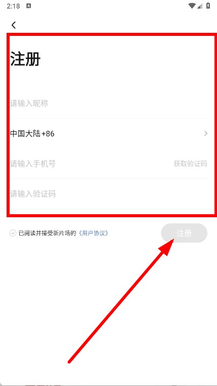 4、依次输入昵称、手机号、验证码,勾选同意后,点击注册。