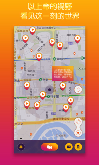 你看,帮你记住生活中的点点滴滴,实时拍摄,还能贴标签,精准定位,捕捉,身边的瞬间。无数个瞬间,在每一个角落涌现。以上帝的视野,看见这一刻的世界。这是你从未体验过的匿名短视频社交,去探索,去窥视。让你找到同样兴趣的朋友~!