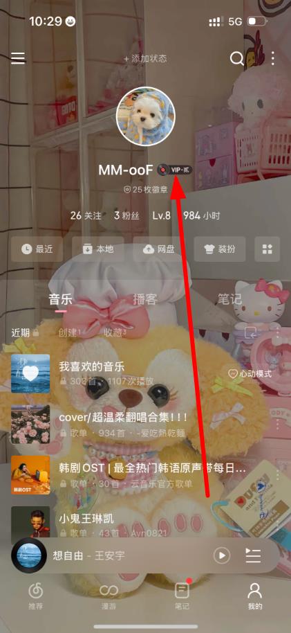 2、进入我的页面后,点击个人头像下方的会员标识区域。