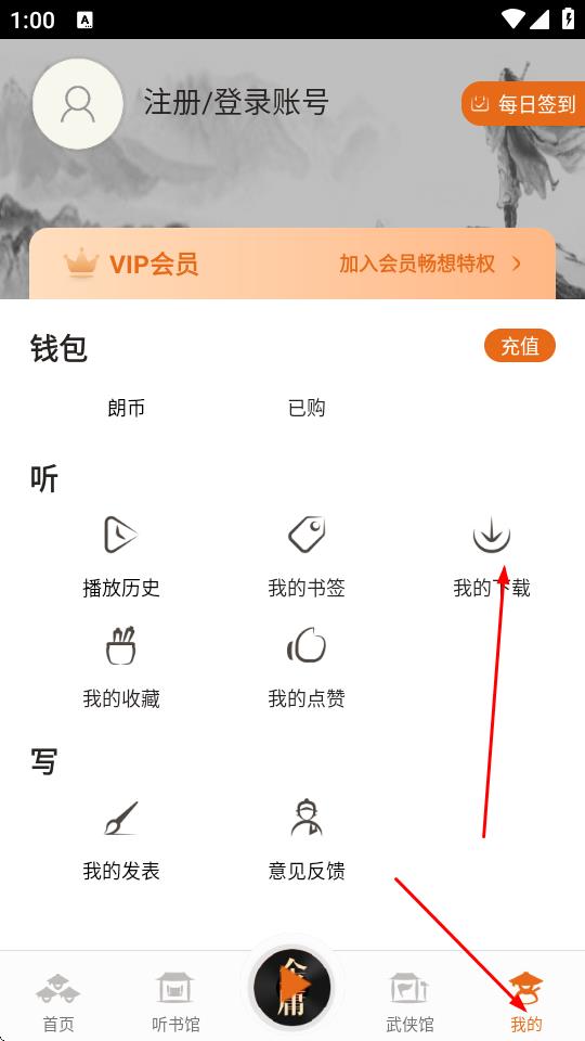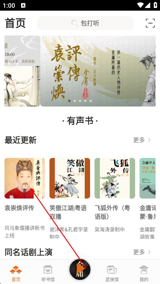 1、打开金庸听书App,找到想要下载音频的有声书,点击进入。