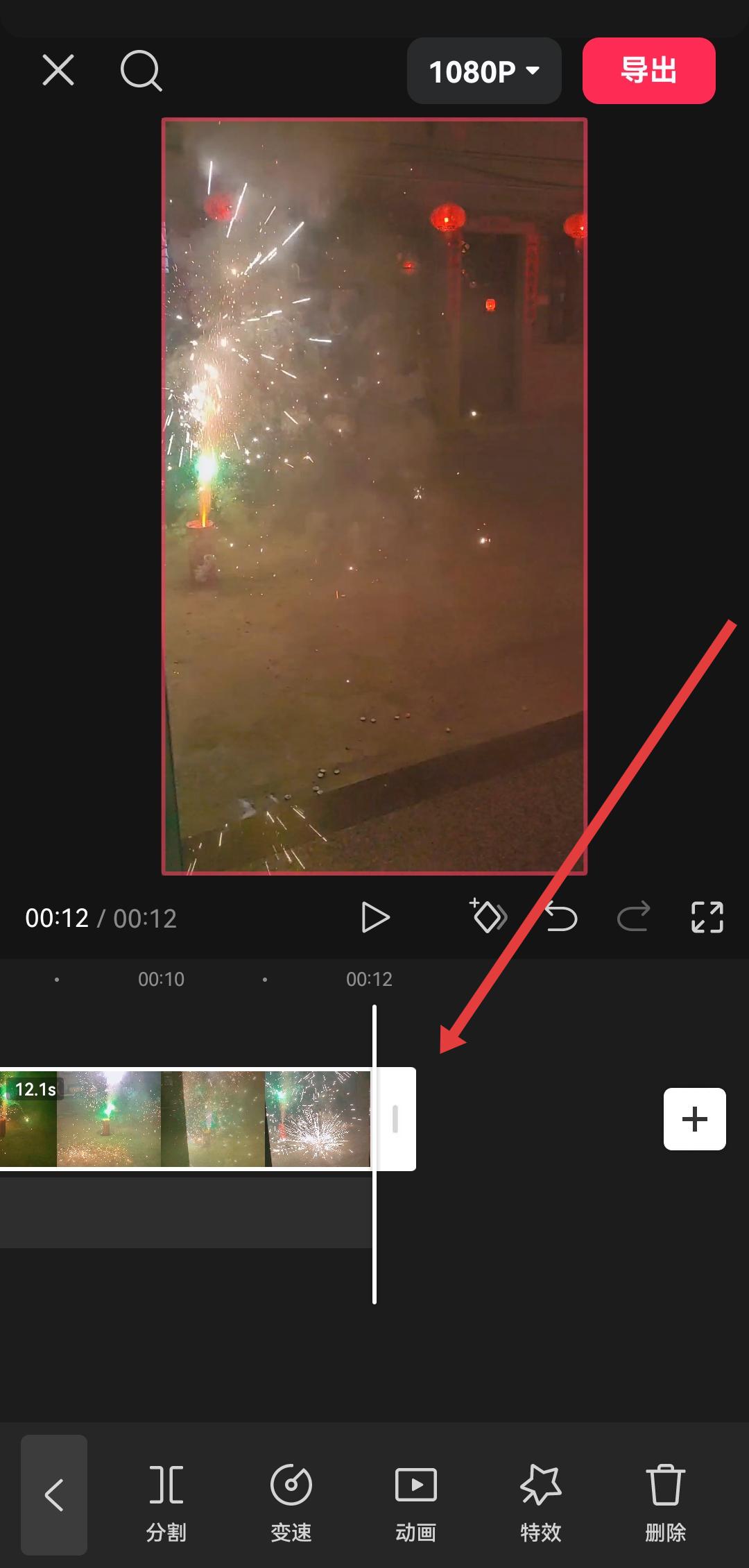 5、打开剪映视频剪辑界面,对视频进行剪辑,剪辑完成后点击“导出”图标