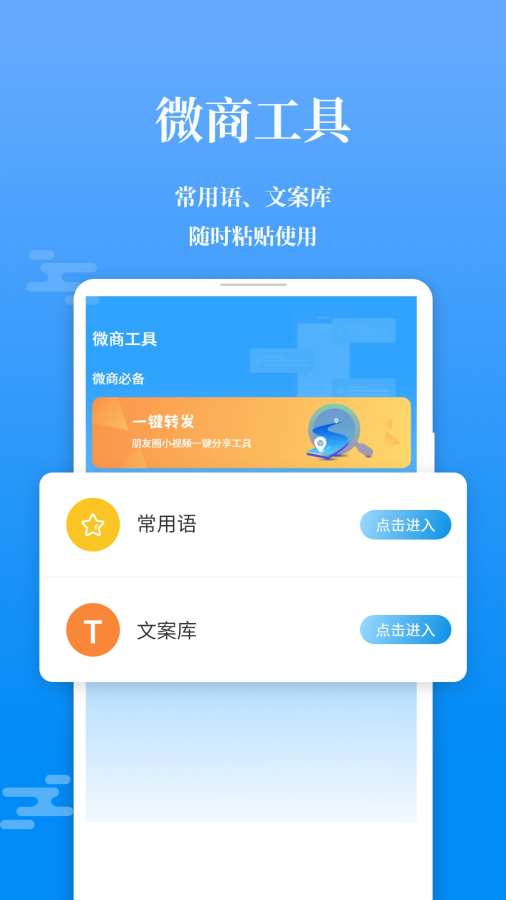 微商输入法不折叠]具备两大实用功能:1. 签名粘贴不折叠:在软件内预先设定您的专属文案签名,无论您发布多少条朋友圈,都能自动为您生成相应的签名文字,省时又省力。2. 直接粘贴不折叠:启动本软件后,只需复制所需的文案,即可直接在剪贴板内进行粘贴,实现快速、简便的文字输入。