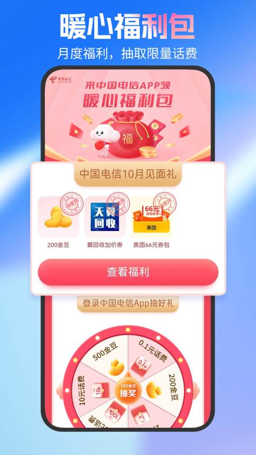 · 暖心福利包:抽限量话费、海量福利月月领不停。