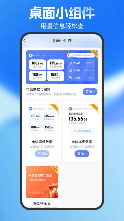 · 桌面组件:用量一目了然,桌面小组件轻松查