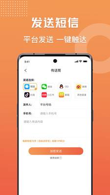 短信、抖音、微信、QQ等多平台传话,通过平台手机号码发送,信息内容通过哈希一对一加密处理,杜绝任何形式的隐私泄露,让您的短信变得更加安全。