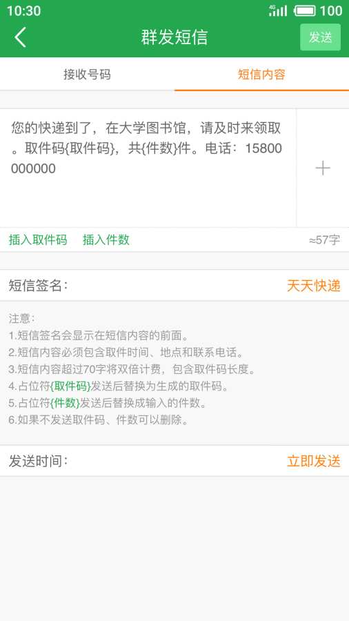 快递短信宝是针对快递员开发的一款快递通知短信群发、包裹管理的软件。