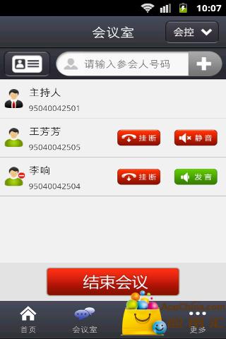 263移动会议基于电话通信网络,利用互联网、智能手机操作系统等技术,为企业提供便利的自助电话会议服务,完美解决多人多地的及时通话,轻松实现会控。当用户成功注册企业会议账号后,可通过手机客户端轻松发起电话会议。会议中,允许添加新参会人,可外呼、挂断参会人电话,同时支持会场的全体静音、锁门等会议控制操作。