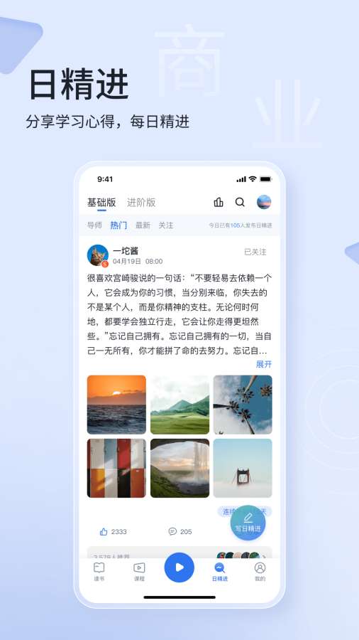 【日精进分享】总结每日学习,加深学习收获。与书友交流分享心得,结交更多志同道合的书友,记录个人成长点滴。