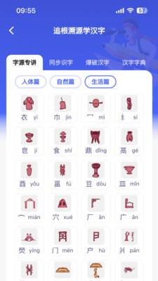 • 溯根知源:精选124个核心字根,通过动态演变、专家视频,揭秘汉字从甲骨文到今天的完整生命史。