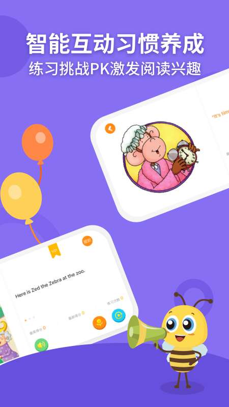 1. 原汁原味的绘本资源:经典读物,出版社引进出版的优质绘本读物,磨耳朵/韵律诗/经典诗歌、动画,故事和科普类绘本、桥梁书、章节书等2. 遵循语言发展规律:磨耳朵/绘本音频,情境对应-看动画/绘本/场景画面,说一说-读绘本/角色扮演/多人挑战pk3. 激发兴趣培养习惯:记录、统计、生成磨耳朵/阅读存折,可录入其他设备数据;正向激励功能,花蜜、金币奖励;激发阅读兴趣,培养受益终生的阅读习惯
