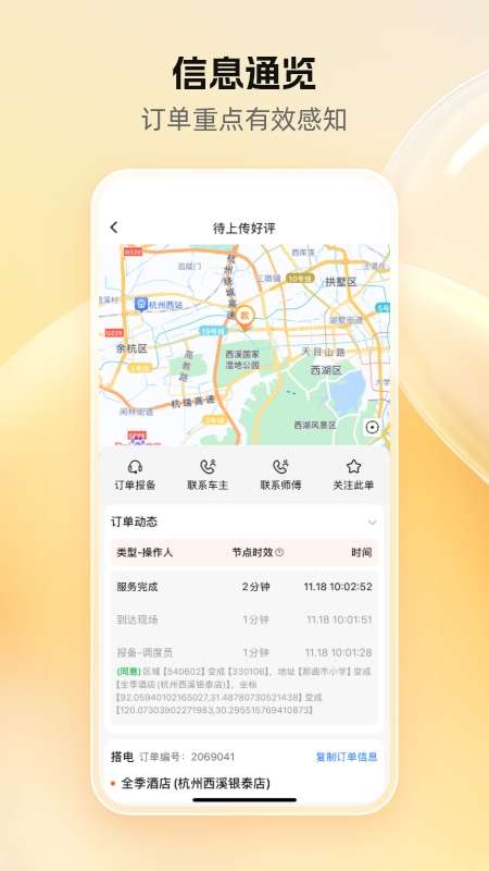 点点救援是一款提供给汽车救援司机使用的智能化APP,具有任务信息清晰展示、救援过程全程指导、照片上传规范操作的特点,全程把控服务质量,提高客户满意度。致力于让天下没有难做的道路救援,通过科技让汽车救援行业更规范。亮点描述:- 司机坐标实时上报,自动派单更精准- 上传救援照片有模板提示,提高照片质量 来自应用汇: 点点救援