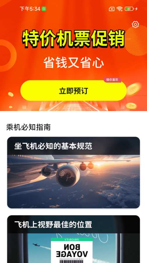 本应用提供全面、精准的全国特价机票查询、是您从家门到航班的全方位旅行助手【乘车指南】丰富的乘机注意事项【机票查询】输入出发地、目的地即可为您推荐获取实时低级机票 来自应用汇: 低价机票管家助手