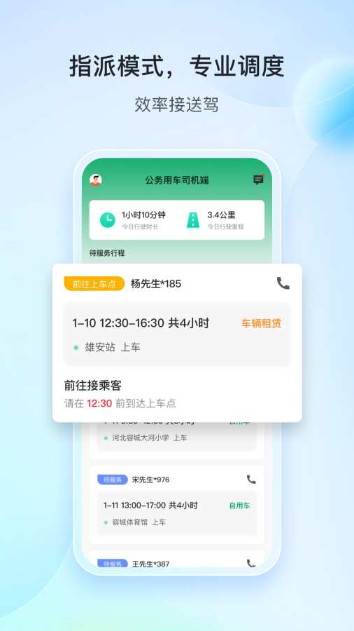 雄安行司机端是中国雄安集团交通有限公司打造的服务于公务用车的司机端APP,司机可以对调度平台的订单进行服务和改派,携手打造雄安数字化绿色出行体验。【联系客服】如您在使用APP的过程中遇到任何问题,可通过客服电话询问和反馈。客服电话:400-111-9080 来自应用汇: 雄安行司机端
