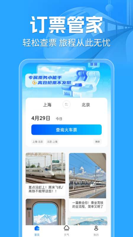 智抢火车票助手是一款专为春运、节假日出行设计的APP,大幅提升购票成功率。用户只需设置好出发地、目的地、乘车日期和偏好车次,并且还有天气预报,各种小工具,轻松搞定回家车票! 来自应用汇: 智抢火车票助手