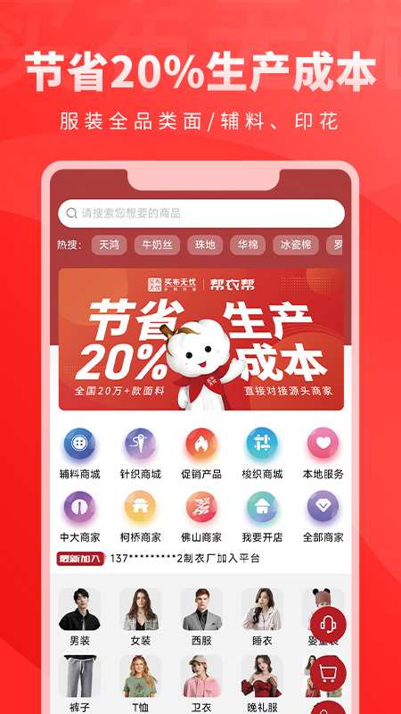 帮衣帮是纺织面料行业的B2B平台,为行业提供优质面料产品、数字化系统、面料图书馆、云仓、物流配送、金融服务等赋能,助推行业实现多、快、好、省的综合服务平台。 我们的使命:帮助服装企业在家门口就能买到全国优质的服装面料。 来自应用汇: 帮衣帮