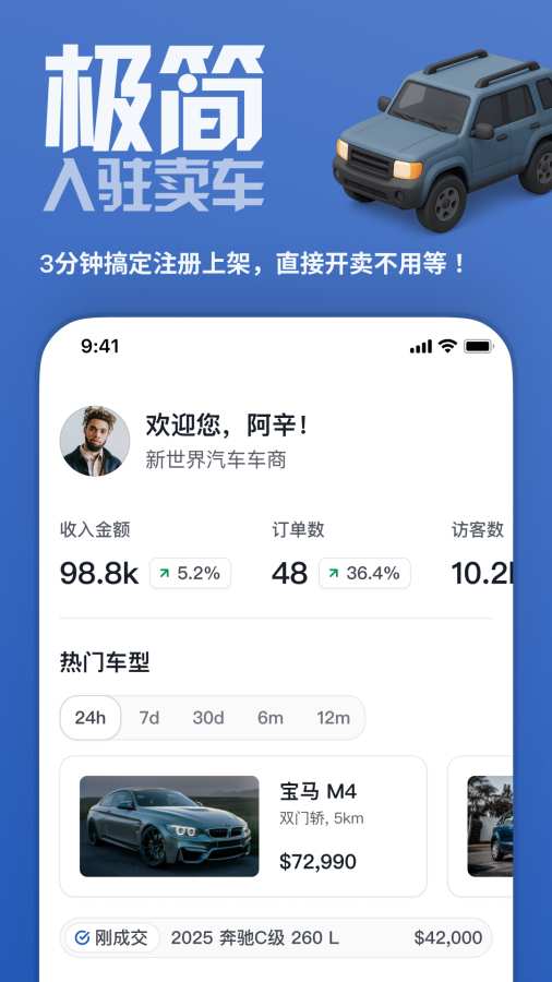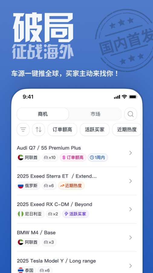 这是一款专为汽车出口市场打造的移动应用。在国内,它为二手车商提供了一个便捷的在线平台,帮助他们轻松管理库存和销售流程。而在国际市场上,该应用为广大用户提供了一个直接通过手机浏览、挑选和购买心仪汽车的渠道。无论是国内商家还是海外买家,都能享受到便捷、高效的汽车交易服务。 来自应用汇: 车出海
