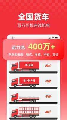 “牛卡福货主”集“万金油”、“牛运宝”、“ETC”等产品功能为一体,并且新增“AI智能调车”模块,可实现一次授权登录,轻松体验能源加注、成本管理、智能调车等产品的强大功能,从此无需在多个系统之间来回切换,为您免去诸多烦恼。更多卓越功能,敬请期待牛卡福货主端的全新亮相。