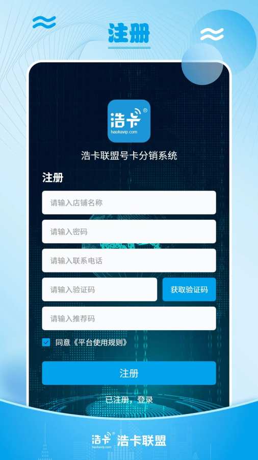 浩卡联盟APP - 号卡推广与流量卡代理一站式平台