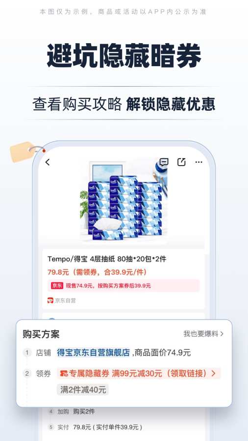 慢慢买还提供优惠券查询、扫码比价网购、拍照搜同款、专属补贴、价保监控等一系列实用功能,快来下载体验这款好用的查价软件吧。