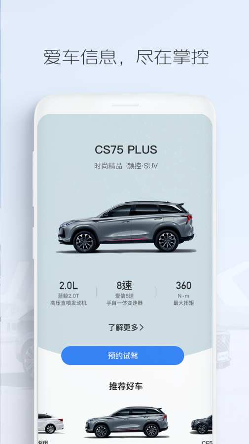 长安汽车APP,是以用户全生命周期全旅程服务为主,为长安车主和喜爱长安的用户打造的智慧服务生活平台。在这里,不仅为您提供用车养车服务,还可以随时随地分享生活,参与互动交流,内容共创,带给您不一样的乐趣体验,让生活更加丰富多彩。