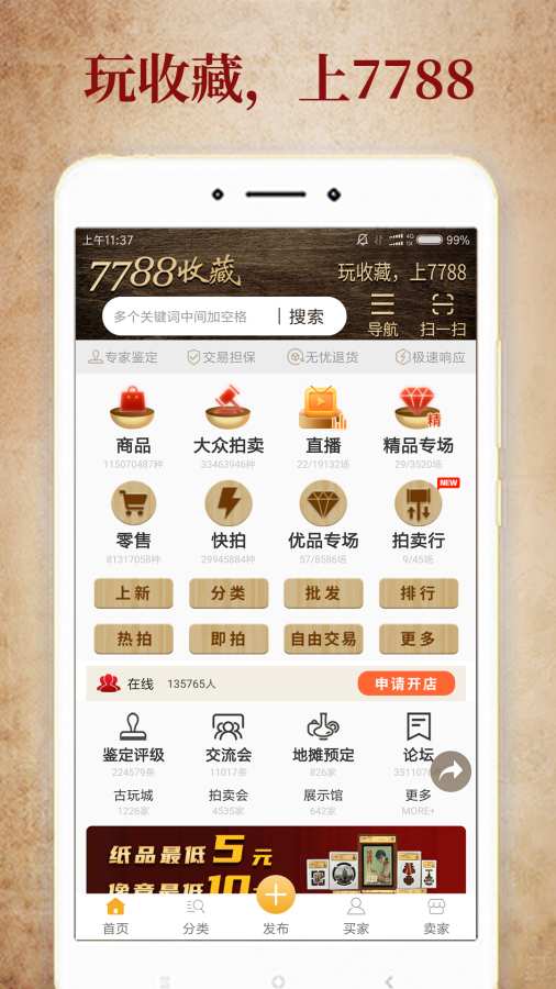 7788收藏主要是以字画、古籍、连环画、邮币卡、票证、徽章、陶瓷、紫砂、文房、文玩、玉石、木艺、唱机、相机、唱片等收藏品拍卖、零售、交流的交易平台。