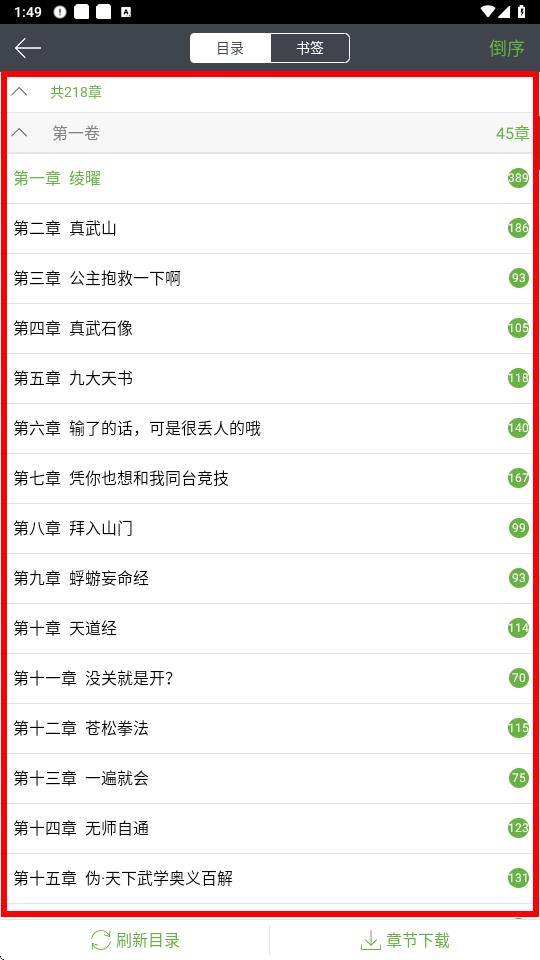 3、在弹出的目录界面中,即可查看该小说的完整版目录,点击相应章节标题就能跳转阅读。