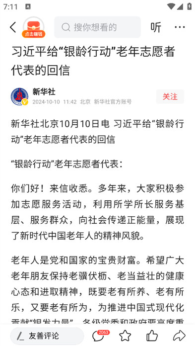 2、点击自己想要阅读的新闻资讯就会为用户们呈现详细的内容,还能够进行点赞和评论等互动;
