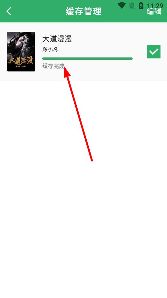 3、在缓存管理页面,可查看小说缓存进度,缓存完成后就可以离线阅读。