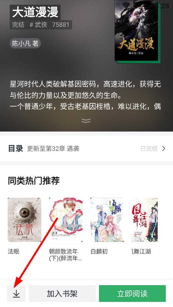 2、进入小说介绍页面后,点击左下角的下载图标。