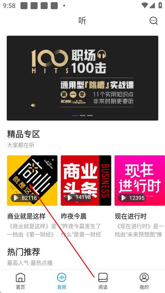 2、在音频页面的精品专区中,找到感兴趣的的音频节目,如商业就是这样,点击进入。