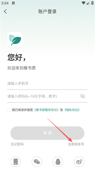 3、在账户登录页面,点击右下角的注册新账号选项,进入注册新账号的页面。