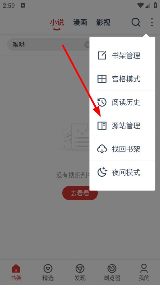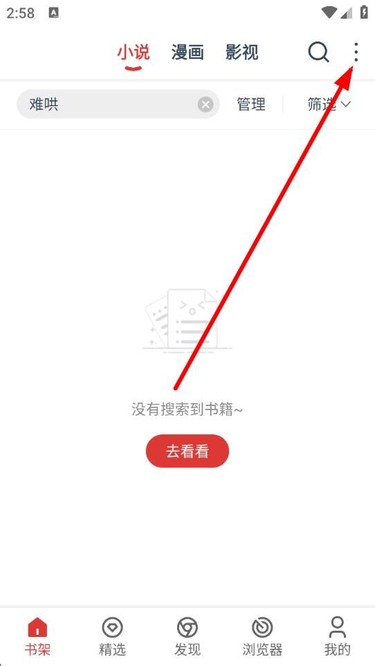 1、打开淘淘小说APP,进入书架界面,点击右上角三点图标,展开更多选项。