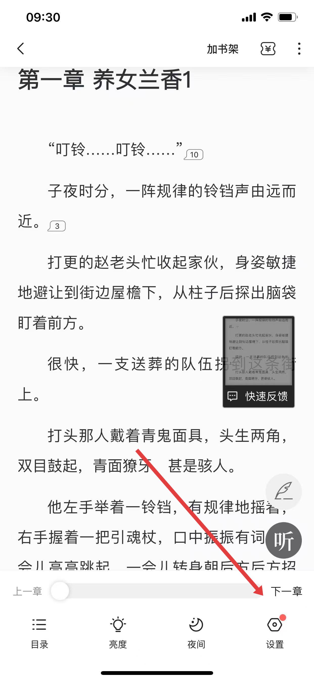 2、进入小说详情页后,点击免费试读按钮,进入阅读界面。