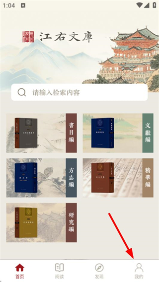 1、在江右文库首页,点击底部的我的选项,进入个人中心页面。