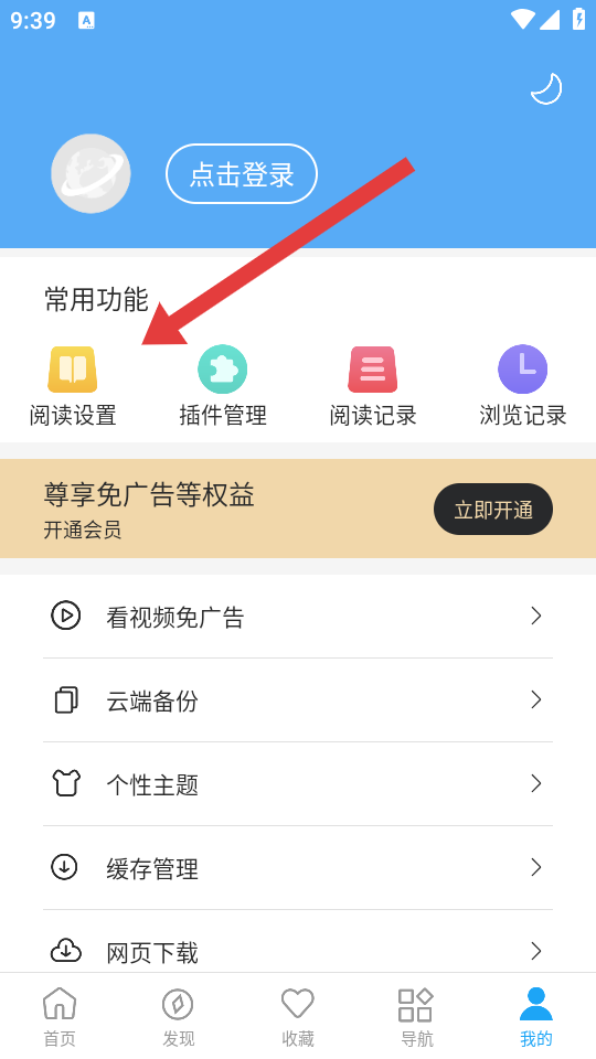 2、在我的页面,点击阅读设置的选项,进入阅读设置的界面。
