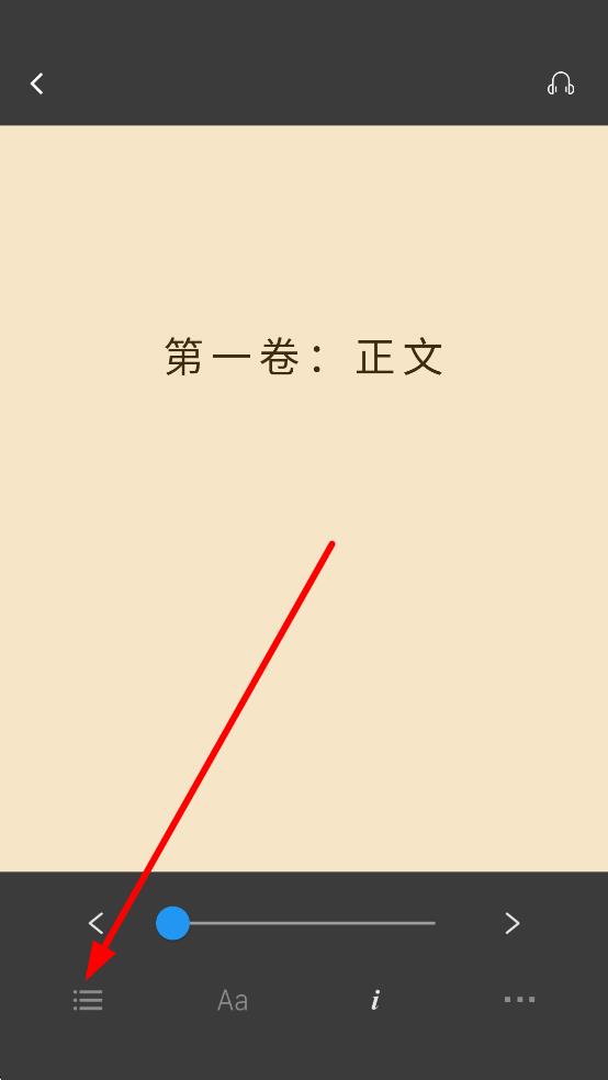 2、进入小说阅读页面后,点击屏幕下方的目录图标呈三条横线样式。