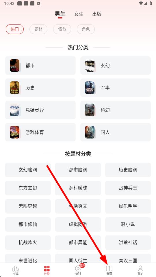 1、打开追书神器app,点击底部导航栏中的书架选项进入书架页面。