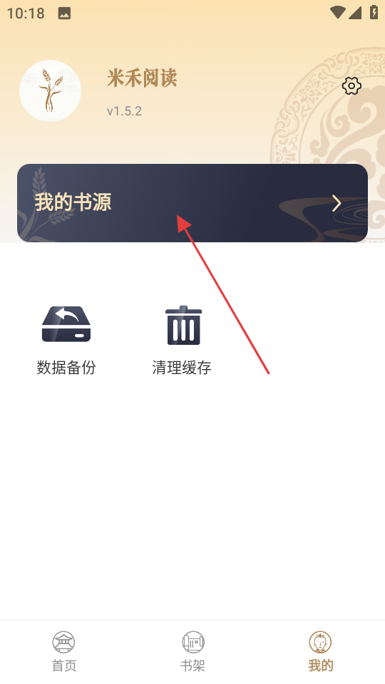 2、在个人页面,点击我的书源,进入书源设置页面。