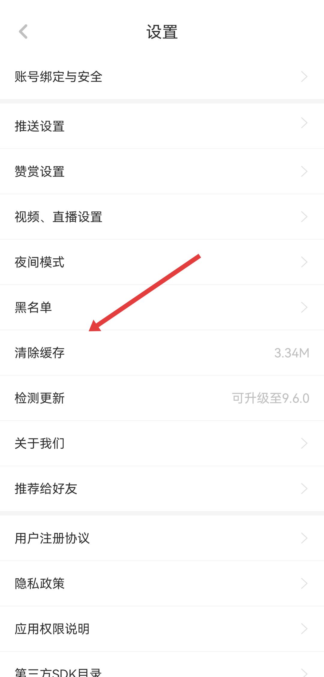 3、在设置的界面,需要点击清除缓存,弹出清理确认框。