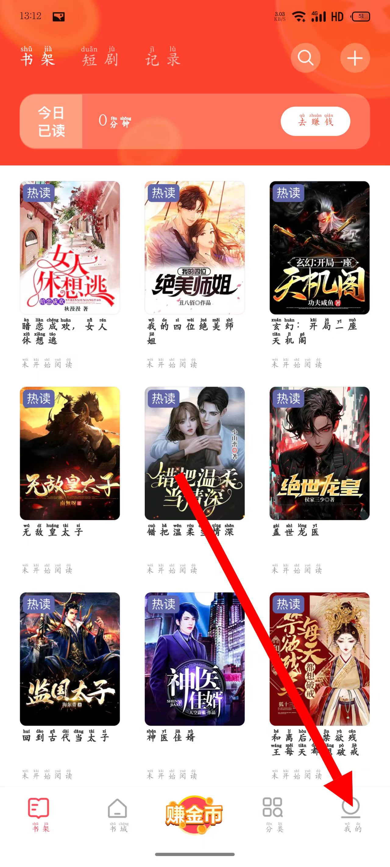 1、打开速读免费小说,点击右下角我的。