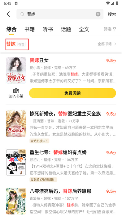 3、此时屏幕之中将会出现有【替嫁】标签的所有小说;