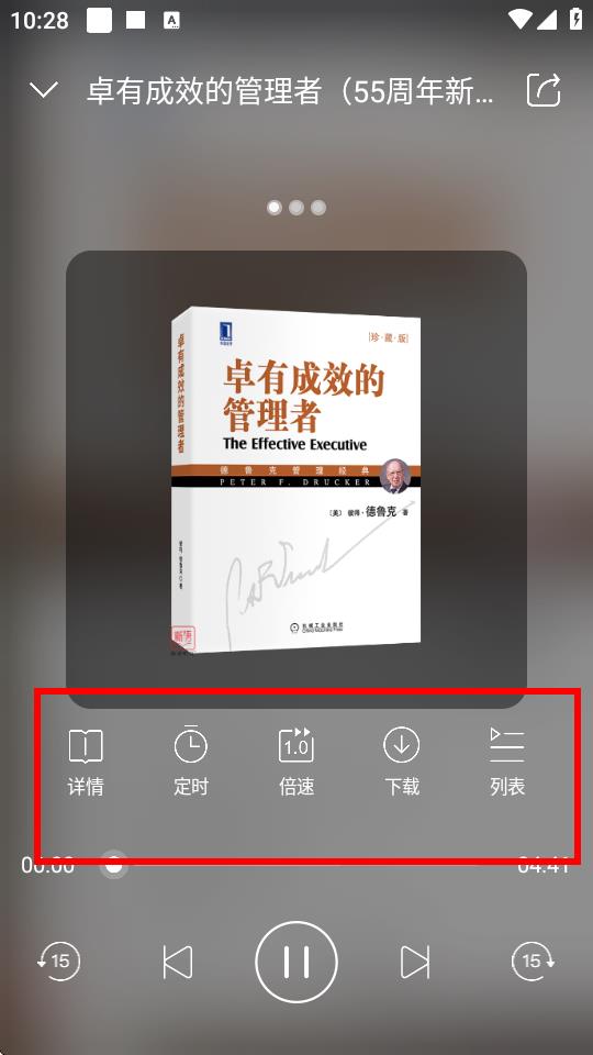 4、播放过程中,可利用播放界面下方的详情、定时、倍速、下载、列表等功能,个性化设置听书体验。