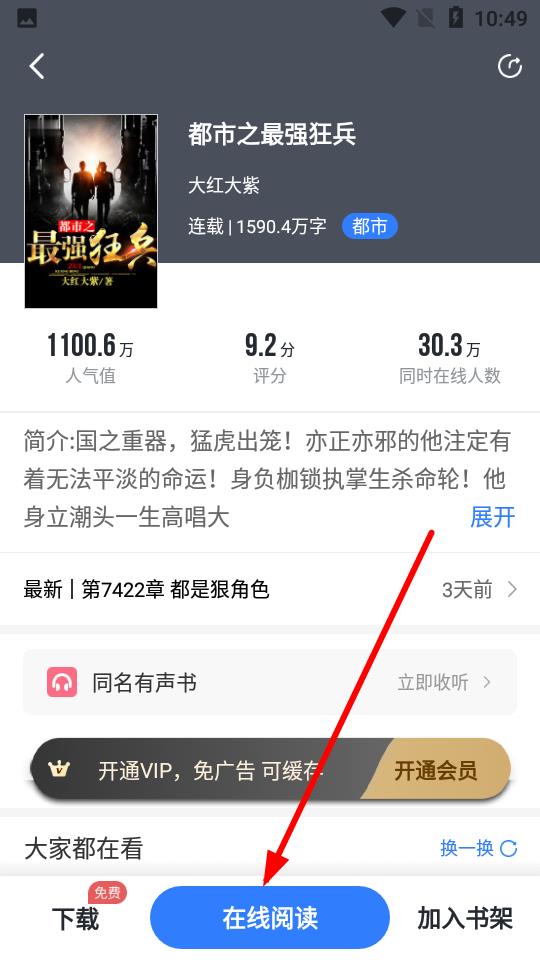 2、进入小说详情页后,点击在线阅读按钮进入阅读界面。
